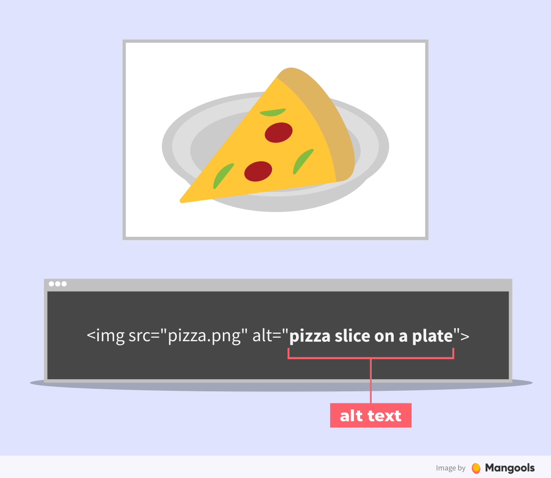 - Texte utilisé comme description de l'image pour les visiteurs et les robots d'exploration malvoyants.